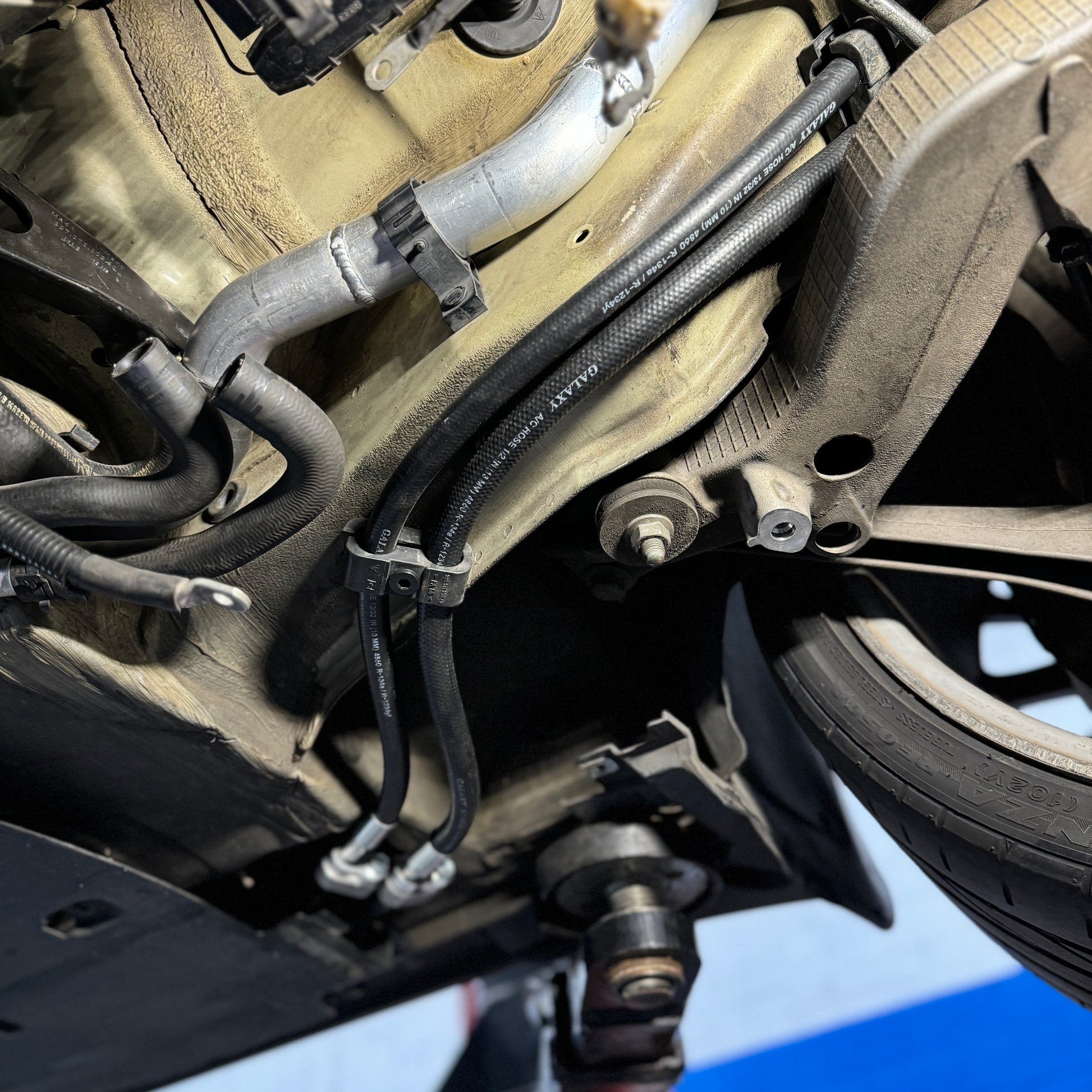 Custom air conditioning line kit to connect a Honda K-Series air conditioning compressor to the house existing air conditioning system of your Porsche 996 / 997